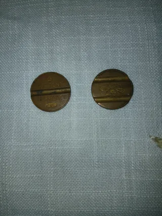 Gettoni in metallo per telefoni pubblici. - Materiale: metallo - Colore: bronzo - Design con righe orizzontali