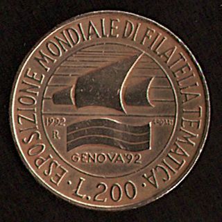 Moneta 200 Lire Esposizione Filatelica Genova 1992