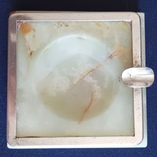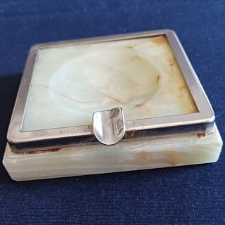 Posacenere in pregiato onice pachistano. Vintage anni '70. Usato, ma ancora in ottimo stato. Dimensioni approssimate: 8,5 x 8,5 x 2 cm. Peso medio: 310 gr.