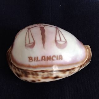 Conchiglia Naturale Cypraea Tigris con incisione segno zodiacale Bilancia (24 Settembre - 24 Ottobre). Perfetta da collezionare o come regalino particolare. Dimensioni approssimate: 7x5x4 cm. Peso: 60 gr.