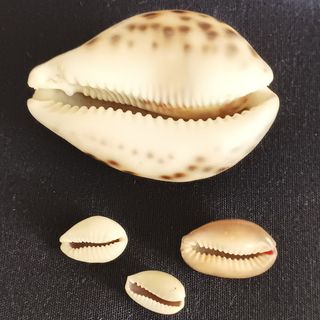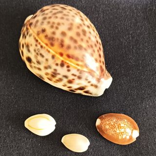 Conchiglie Naturali Cypraea Tigris da collezione. Una grande e 3 piccole. Perfette da collezionare o da inserire in un acquario. Dimensioni approssimate della più grande: 7x5x4 cm. Peso: 60 gr.