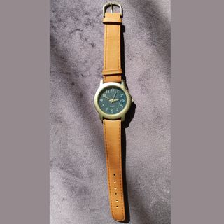 Orologio classico sportivo da uomo al quarzo. Cinturino in vera pelle marrone, quadrante fondo scuro, cassa in acciaio, corona, fondello a pressione. Usato, in ottimo stato, perfettamente funzionante. Batteria appena cambiata.