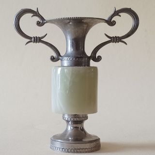 Anforetta in onice pachistano e peltro vintage anni '60. Altezza: 10 cm. Peso: 120 gr. Ideale per collezionisti, soprammobile, o piccolo regalo.