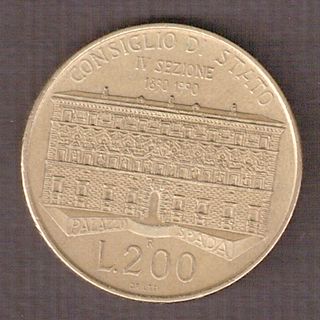 Moneta 200 Lire Centenario Consiglio di Stato 1990