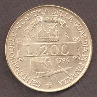 Moneta 200 Lire 100mo Accad. Guardia Finanza 1996