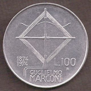 Moneta 100 Lire Italiane - Guglielmo Marconi 1974