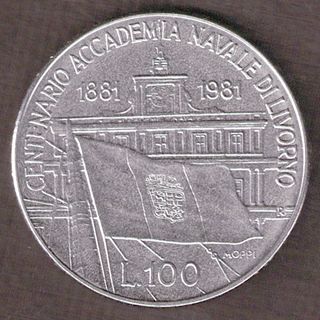 Moneta 100 Lire 100.mo Accad. Navale Livorno 1981