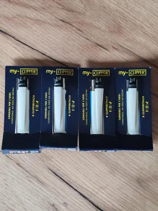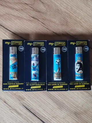 Set di 4 accendini Clipper con grafiche uniche. - Design da collezione. - Modelli assortiti con disegni a tema.
