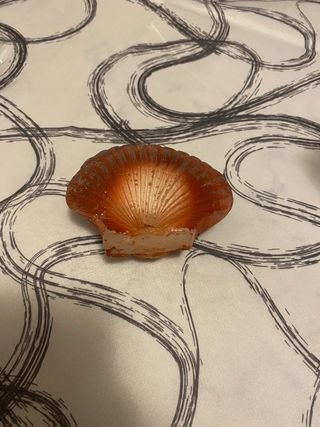 Bellissima conchiglia decorativa, perfetta per aggiungere un tocco marino alla tua casa. - Colore: Arancione con sfumature bianche. - Design: Coste pronunciate. - Materiale: Guscio naturale.