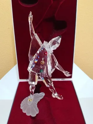 Figura in cristallo Swarovski di Pierrot, un personaggio iconico. - Realizzato in cristallo trasparente. - Dettagli colorati sul costume. - Base in cristallo satinato.