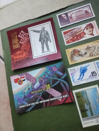 Lotto di francobolli dell'Unione Sovietica. - Francobolli con immagini di Lenin, cosmonauti, architetture e paesaggi. - Valori facciali in rubli e kopecks. - Alcuni francobolli presentano scritte in cirillico.