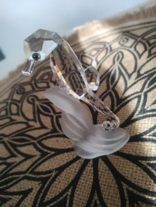 Bellissimo cavalluccio marino in cristallo Swarovski. Un pezzo elegante che cattura la luce. - Realizzato in cristallo trasparente. - Base in cristallo satinato.
