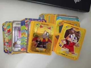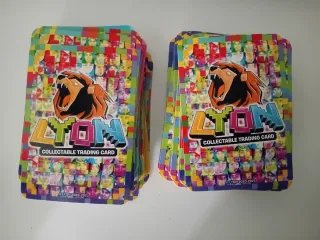 Set di carte personaggio Lyon - Carte con personaggi come Natasha e Anna. - Alcune carte mostrano valori di forza come 80, 120 e 50. - Presenti anche carte con illustrazioni di ambienti interni.