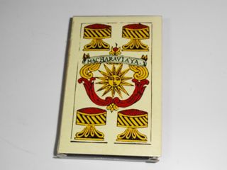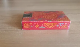 Mazzo di carte Geyper Man. 1970. 42 carte e manca la carta del regolamento. Scatola leggermente danneggiata come mostrato nelle foto. Osservare il retro delle carte, pubblicità stampata. Le carte sono in buone condizioni.