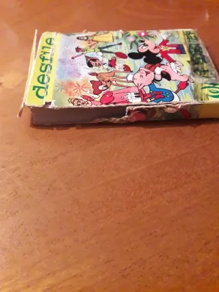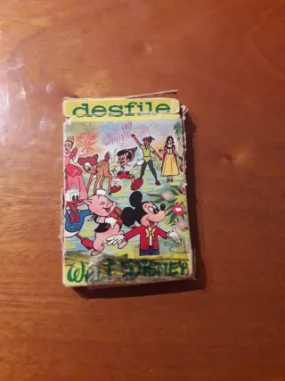 Un divertente gioco di carte con personaggi classici di Walt Disney. La scatola è in cattivo stato ma le carte sono in ottime condizioni e con istruzioni. Include illustrazioni di Desfile, personaggi come Topolino, Bambi, Pinocchio e altri. Ideale per collezionisti e fan di Disney.