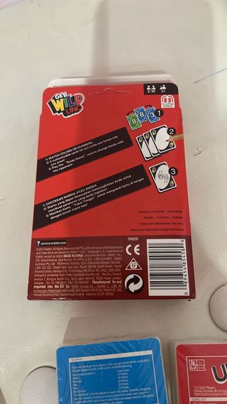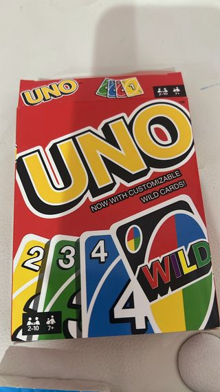Scatola di carte da gioco UNO, perfetta per serate in compagnia. - Include carte con numeri e azioni. - Scatola rossa con logo UNO ben visibile. - Adatto per 2-10 giocatori, età 7+.