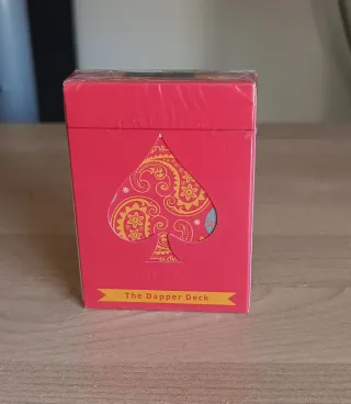 Mazzo di carte The Dapper Deck (Orange) - Limited First Edition by Vanishing Inc. Nuovo Sigillate. Quando Vanishing Inc. Magic ha scelto di realizzare il suo primo mazzo di carte da gioco di marca, avevano un obiettivo specifico in mente: creare il più “modaiolo”, fine e sofisticato "look" per un mazzo di carte mai realizzato. Il risultato è il Dapper Deck, che è un mazzo di carte attraente, realizzato con i migliori materiali e dall’ottima finitura. Sono molto belli e sottili, e indicati per le prestazioni formali. Molti mazzi sono progettati per essere tenuti nel cellophane, per collezione e per tenerli in mostra. Questo mazzo è s