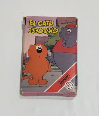Mazzo di carte vintage di 'El Gato Isidoro', un classico dei cartoni animati degli anni '80 con istruzioni per il gioco. Dettagli del Mazzo Fabbricante: Naipes Heraclio Fournier S.A. Contenuto: Il mazzo è composto da 33 carte + carta con le istruzioni del gioco. Anno: 1984. Stato: NUOVO. Le carte sono in perfetto stato, senza pieghe, rotture o usura. La scatola presenta qualche deterioramento dovuto al passare degli anni. (Vedi forum)