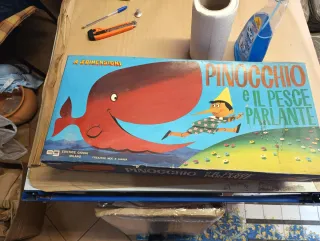 Gioco da tavolo Pinocchio e il Pesce Parlante. - Edizione 4 Dimensioni. - Editrice Giochi Milano. - Creazioni Moc e Gianba. Non sono sicuro che ci siano tutti i pezzi non conosco il gioco