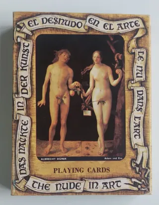 Carte da gioco con tema 'El desnudo en el arte'. Include 55 riproduzioni di dipinti. - Das nackte in der Kunst (El desnudo en el arte). - Le nu dans l'art (El desnudo en el arte). - El desnudo en el arte. - The nude in art. - Opera di Albrecht Dürer: Adam und Eva (Adán y Eva).