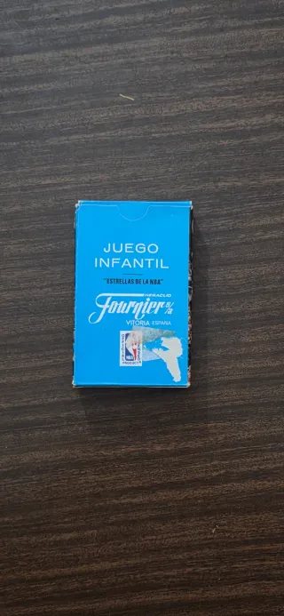 Set di carte da gioco Stelle NBA Fournier. La scatola mostra segni di utilizzo. Include mazzo di carte e illustrazioni di giocatori NBA.