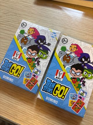 Due confezioni di carte da gioco Teen Titans Go! Domino di KFC. Contiene due set di carte domino. Personaggi di Teen Titans Go!. Consigliato per età superiore a 3 anni.