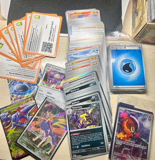 Vendo carte del gioco di carte collezionabili Pokemon. Il lotto include carte singole e un mazzo. - Carte Pokemon varie. - Carte Allenatore. - Carte Energia base. holo .carta sealed con divisori . codici eccetera sleeve dadi e scatola aperta ..
