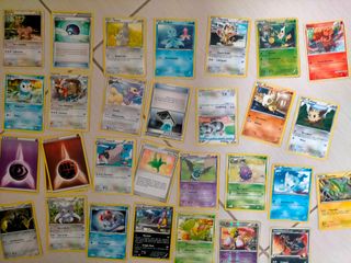 Collezione di carte Pokémon. - Carte con illustrazioni colorate. - Diverse carte con diversi Pokémon.