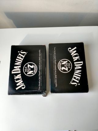 Due mazzi di carte da gioco Jack Daniel's, ancora sigillati nella loro confezione originale. - Design nero con logo Jack Daniel's. - Messaggio Your friends at Jack Daniel's remind you to drink responsibly.