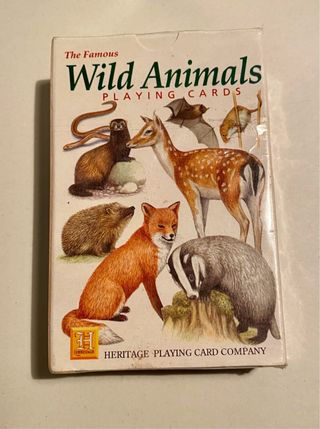 Carte da Gioco "Wild Animals" - Sigillate e Nuove! 🦇 Mazzo di carte da collezione "The Famous Wild Animals" della Heritage Playing Card Company (1998). Condizioni perfette, MAI APERTO, ancora incelofanato di fabbrica. 54 carte illustrate splendidamente con diversi animali selvatici (Volpe, Tasso, Cervo, ecc.) dall'artista John Denaro. Ideali per collezionisti o amanti della natura! Un pezzo unico in condizioni NOS (New Old Stock).