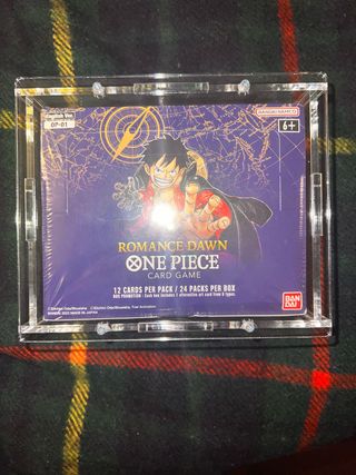 Box sigillata del gioco di carte collezionabili One Piece, espansione Romance Dawn. - Edizione: English Ver. - Codice prodotto: OP-01 - Contiene 12 carte per busta e 24 buste per box. - Promozione speciale: ogni box include 1 carta alternativa. - Prodotto da Bandai Namco. - Made in Japan.