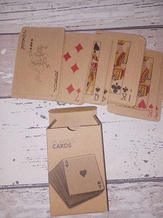 Set di carte da gioco in stile vintage, perfette per serate di poker o giochi di società. Il design in cartone grezzo conferisce un aspetto unico e retrò. Nuove in confezione, mai usate Colore beige/marroncino. - Carte con Joker. - Design in cartone grezzo. - Scatola inclusa.