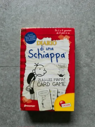 Gioco di carte Diario di una Schiappa creato dall'autore Jeff Kinney.usato in buone condizioni - Adatto per 2-6 giocatori. - Età consigliata: da 8 anni in su. - Editore: Lisciani.