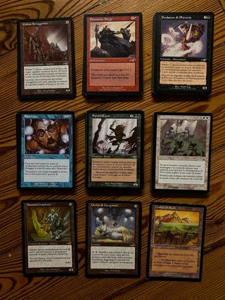 ATTENZIONE ‼️ LEGGERE PRIMA DI ACQUISTARE. Disponibilita di carte magic vintage old tutte diverse, italiano o inglese (poche carte in altre lingue), in condisioni variabili (perlopiu buone o molto buone; alcune presentano segni di gioco e del tempo soprattutto sui bordi). carte comuni e non comuni. No rare. Chiedere quali espansioni sono disponibili: spesso presenti leggende, oscurita, mirage, visioni, urza, mercadia, 4-5-6-7-8-9, invasione, odissea, congiunzione, tormento, flagello, sentenza,ecc Prezzo indicativo per 1000 carte = 130 euro (da concordare anche secondo le espansioni presenti e disponibili). Scrivetemi per altre info.