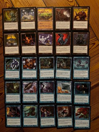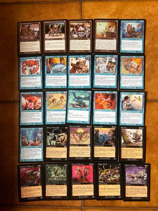 Set di 191 carte magic vintage del blocco mirrodin, anni 2003-2004, con 70 mirrodin, 60 darksteel e 61 quinta alba, tutte diverse, comuni e non comuni. Condizioni buone / discrete, ci sono segni del tempo sui bordi come da foto. Disponibile per altre info.