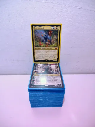 Mazzo di Magic the Gathering formato Commander con comandante Tom Bombadil, mazzo pentacolore che si basa sugli Incantesimi Saga. Per consultare la Lista completa usare il QR in foto. Verranno inviate sleeves trasparenti, non quelle in foto. Carte in Inglese e Italiano