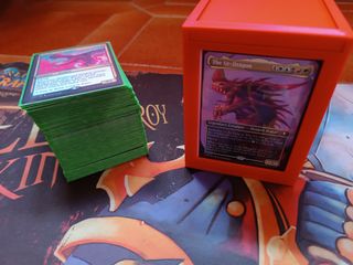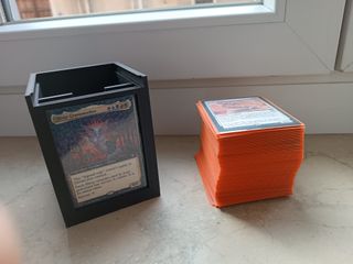 Set di 100 carte proxy Magic, perfette con sleeves arancioni e deckbox nero per espandere la tua collezione o provare nuove strategie. Le carte sono protette da bustine Deckbox incluso - 100 carte proxy - 100 sleeves arancioni -1 Deckbox nero stampato in 3D PLA