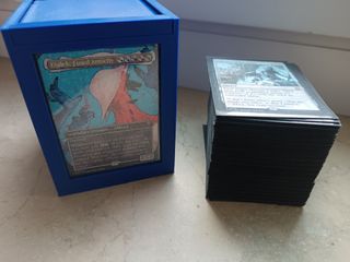 Set di 100 carte proxy Magic, perfette con sleeves nere e deckbox blu per espandere la tua collezione o provare nuove strategie. Le carte sono protette da bustine Deckbox incluso - 100 carte proxy - 100 sleeves nere -1 Deckbox blu stampato in 3D PLA