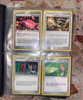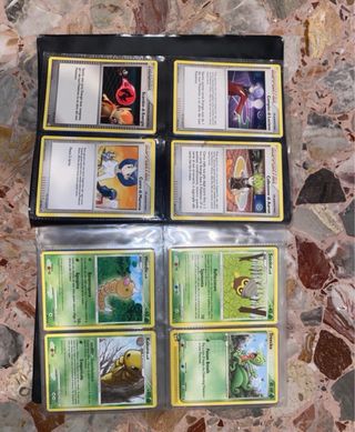 Album di carte Pokémon con diverse carte incluse. - Carte Allenatore: Scambio di Energia, Compito di Luciano, Cuore di Mamma, Collezione di Aaron. - Carte Pokémon: Weedle, Kakuna, Seedot, Treecko. -non ho messo tutte le foto ,sono più di quelle presenti nelle fotografie.