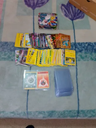 In vendita lotto di carte Pokémon. Include scatola metallica. Varietà di carte. Fodere protettive.