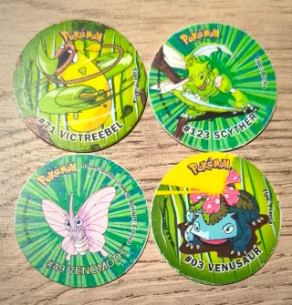Carte Pokémon Tazos 2 e League. Carte di Kakuna, Weepinbell e Scyther. Rare. Altre carte nel profilo.