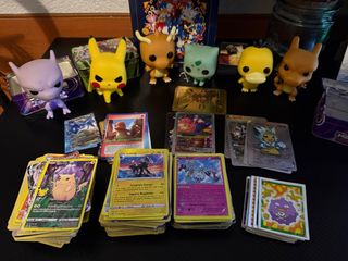 Ampio lotto di articoli Pokémon. - Figure collezionabili di personaggi iconici. - Varietà di carte Pokémon. - Include scatole metalliche. - Scatola di collezione Pokémon. - Carte di ogni tipo, originali e non adesivi, edizioni Merlin del 1999, figure, due mini carte ecc. PREZZO TRATTABILE