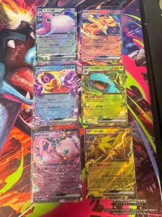 Collezione di carte Pokémon EX. Include 7 carte Pokémon: Puccirin EX, Charizard EX, Jynx EX, Venusaur EX, Mew EX, Zapdos EX. Lingua: Coreano. Tutte a 1€ tranne quella di Charizard che costa 2€.