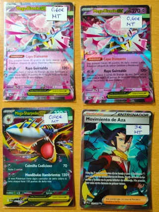 Raccolta di +400 carte Pokémon della collezione Fuochi Fantasma + Hits (prezzi a parte) in spagnolo. Include oltre 400 carte Pokémon, tra cui reverse e olografiche. 47 carte di energia base. 4 Hits: 2 carte di Mega-Diancie ex 041/094 a 0,60€ ciascuna, 1 carta di Mega-Sharpedo 061/094 ex a 0,90€, 1 carta di Movimento di Aza 120/094 a 3€. Tutti i Hits sono protetti da Penny Sleeves.
