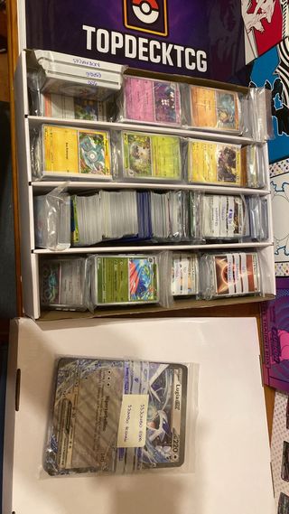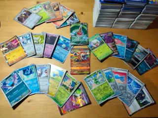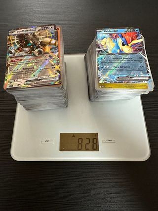 Lott di carte Pokémon originali in italiano. Include circa 800 carte in una scatola. La foto del retro mostra chiaramente che sono originali. Non accetto resi perché qualcuno potrebbe acquistare e restituire le carte senza valore e non me ne accorgerei perché non le capisco.