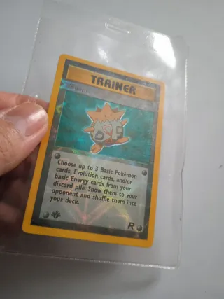 ATTENZIONE È UNA CARTA FALSA! La carta Pokémon Trainer di Togepi è una carta FALSA degli anni '90, una vecchia falsa da collezione con dettagli brillanti, in buone condizioni