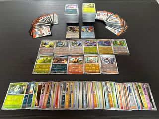 Lotto di 500 carte Pokémon in lingua italiana. Lotto composto da 400 carte comuni /non comuni e 100 reverse/holo delle espansioni scarlatto e violetto e spada e scudo tutte diverse - Carte Pokémon. - Lingua italiana. - Quantità: 500 pezzi.