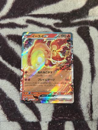 Carta Pokémon Chi-Yu Ex del set SV2D con número 016/071. - Tipo: Fuoco - HP: 190 - Abilità: Nata-mi-cagaz (Scarta 2 carte dalla cima del mazzo dell'avversario). - Attacco: Flame Surge (100 danni) - Scegli fino a 3 Pokémon nella tua panchina e assegna 1 carta Energia Base dal tuo mazzo a ciascuno di essi. Poi, mescola il tuo mazzo. - Debolezza: Acqua x2 - Costo di Ritirata: 2 - Regola EX: Quando il tuo Pokémon-EX viene messo KO, l'avversario prende 2 carte Premio.
