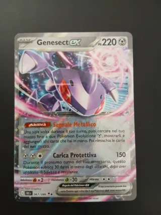 Carta Pokémon Genesect EX dal set BLKT. - Abilità: Segnale Metallico - Attacco: Carica Protettiva (150 danni) - Debolezza: Fuoco x2 - Resistenza: Psichico -30 - Numero carta: 067/086