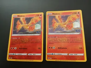 Carte Pokémon Moltres Base GO, numero 012/078. Uno holo l'altro reverse - Pokémon: Moltres - Tipo: Base - Set: Pokémon GO - Numero carta: 012/078 - Illustratore: Pani Kobayashi - Anno: 2022